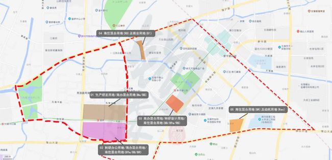 (1)优化教育设施布局,调整原二类工业用地/生产研发用地/科研设计用地/商办混合用地/一类物流仓储用地(M2/Ma/B9a/BB/W1)为中等专业学校用地/商办混合/科研设计/生产研发用地(A32/BB/B9a/Ma)。