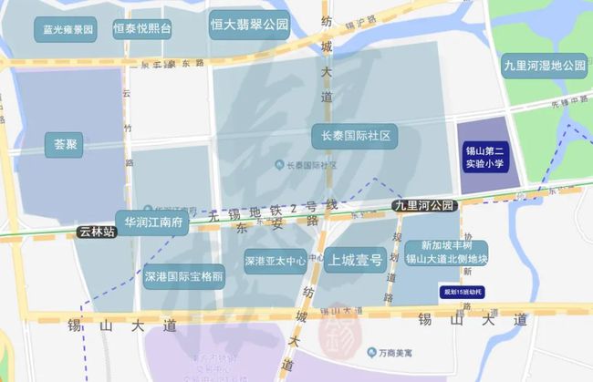 而云林板块中成熟的住宅区基本集中在南兴塘河以南,即我们现在比较熟悉的云林板块南部,有荟聚、宜家、红星美凯龙等人气很旺的大型商业,也有锡山第二实验小学(在建)、云林春雷实验幼儿园等。